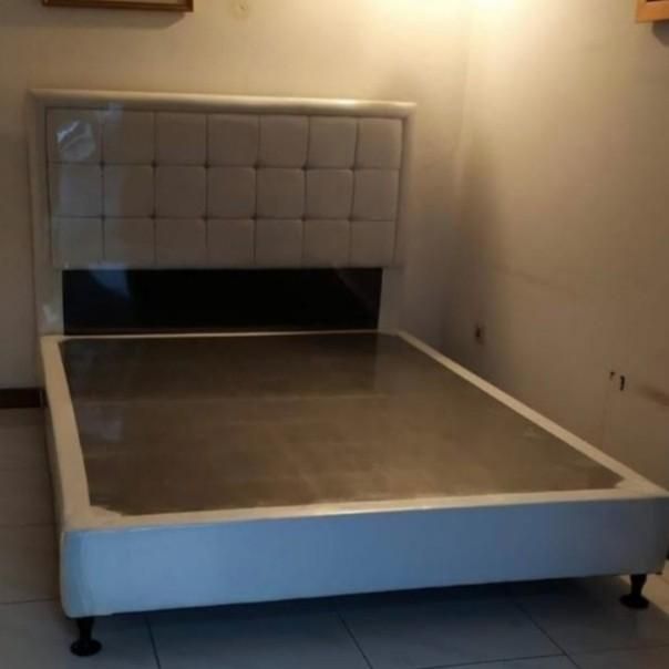 Divan/Difan Tempat Tidur Sandaran Kotak Bahan Oscar - Putih 90x200