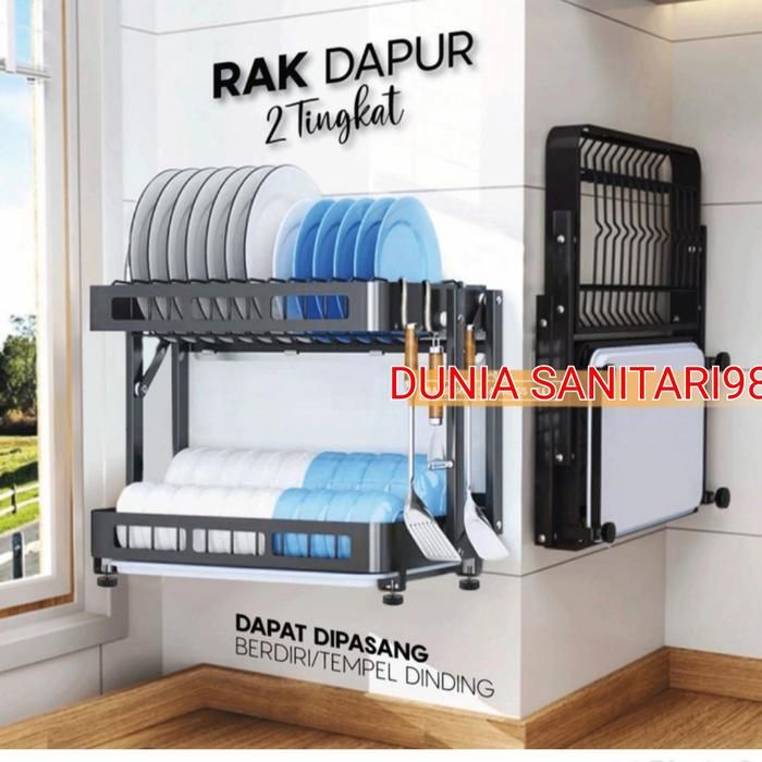 Rak piring Lipat 2 susun bisa Gantung dinding