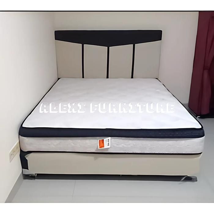 Ranjang Divan Sandaran Garis 4 Minimalis Tanpa Kasur - Bed Dipan Furniture - 90x200 cm Putih