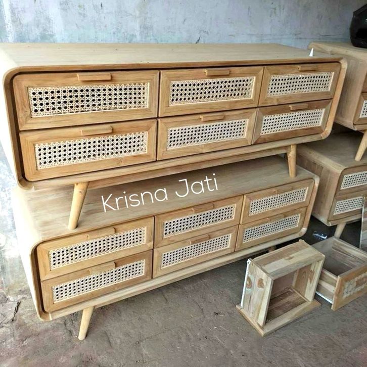 PROMO buffet tv minimalis rotan 6 laci kayu jati | READY STOCK ORIGINAL