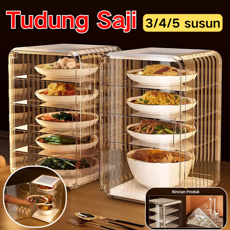 Tudung Saji 5susun Lemari Penyimpan Lauk Wadah Penutup Makanan Agar Tetap Hangat Anti Serangga Dan Debu /Rak Maka