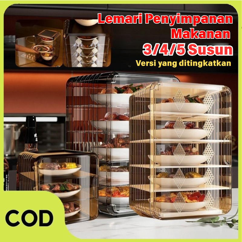 Tudung Saji 3/4/5 Susun Food Storage Rak Makanan Bahan Akrilik Premium Tudung Saji Makan Anti Lalat Lemari Penyim