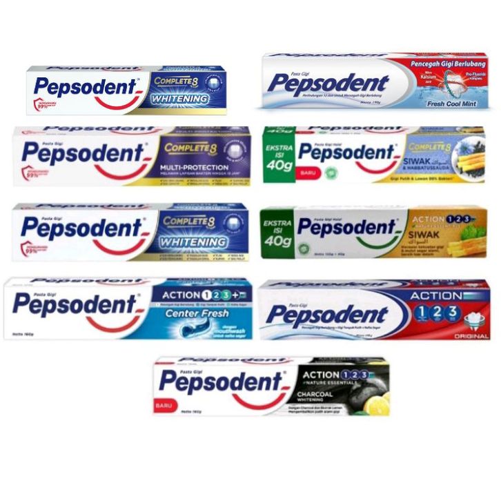 Pasta Gigi Pepsodent 190 Gr Fresh Cool Mint Herbal White, Complete 8 160 Gr ( Whitening Center Fresh Action Charcoal )