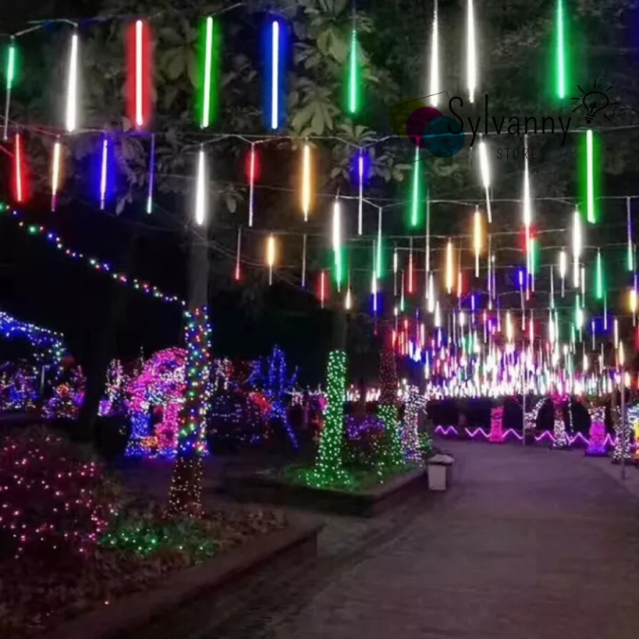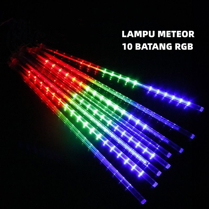 Lampu Meteor LED Hujan 50cm 10Batang Merah Putih RGB Warmwhite 1set