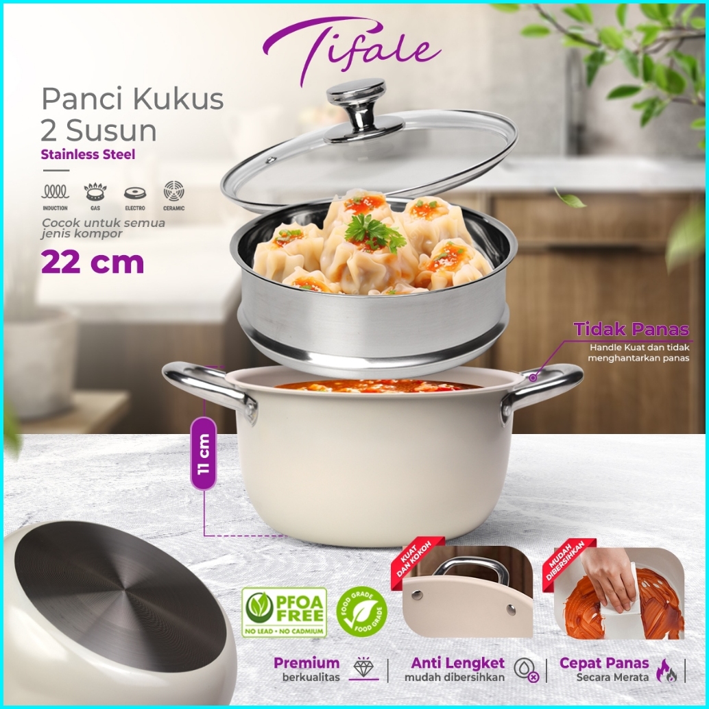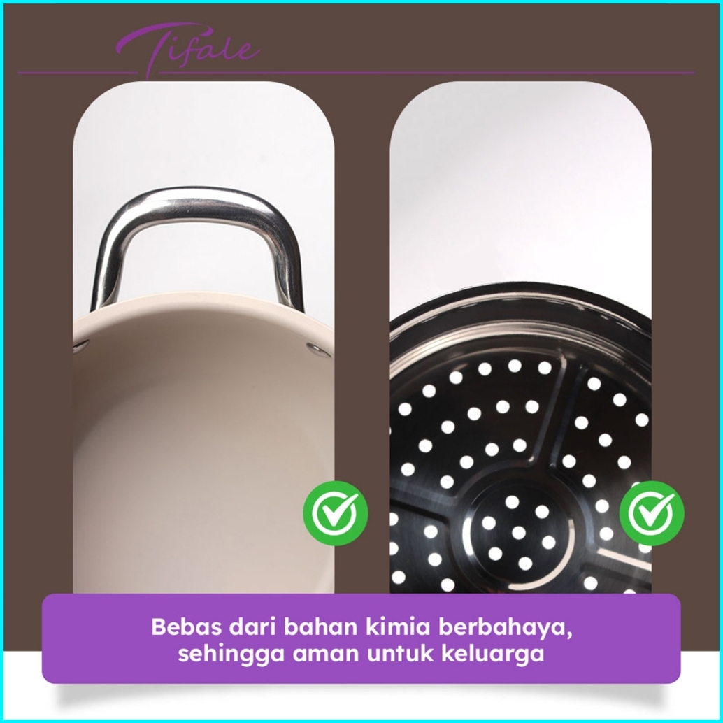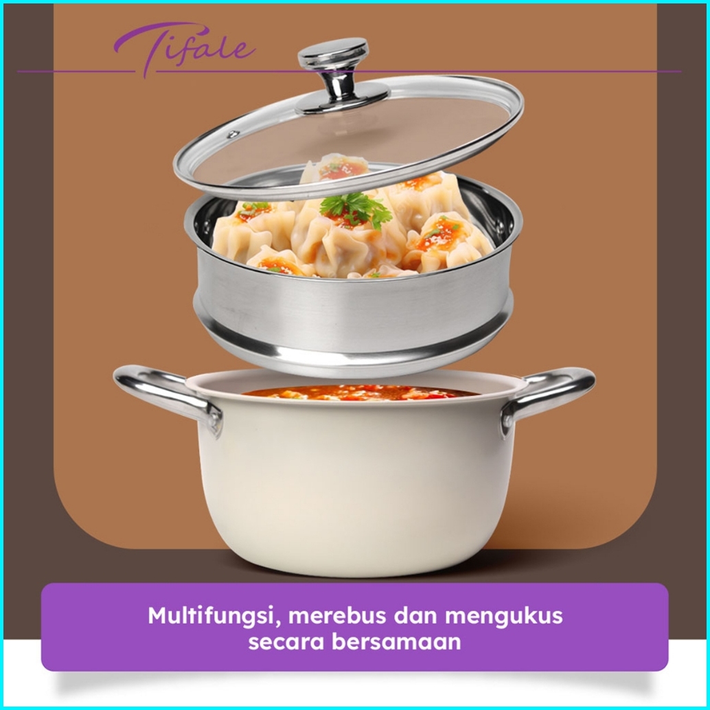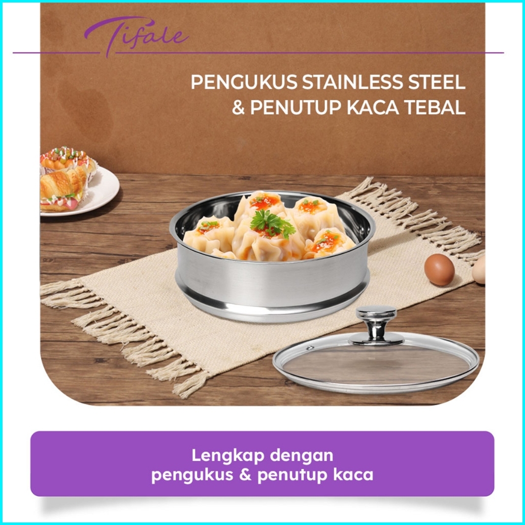 Tifale By Hongzhuo Panci Kukus Sup Steam Pot 2 Tingkat Steamer Stainless Steel Tutup Kaca