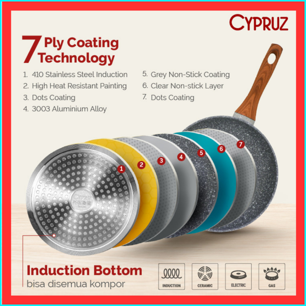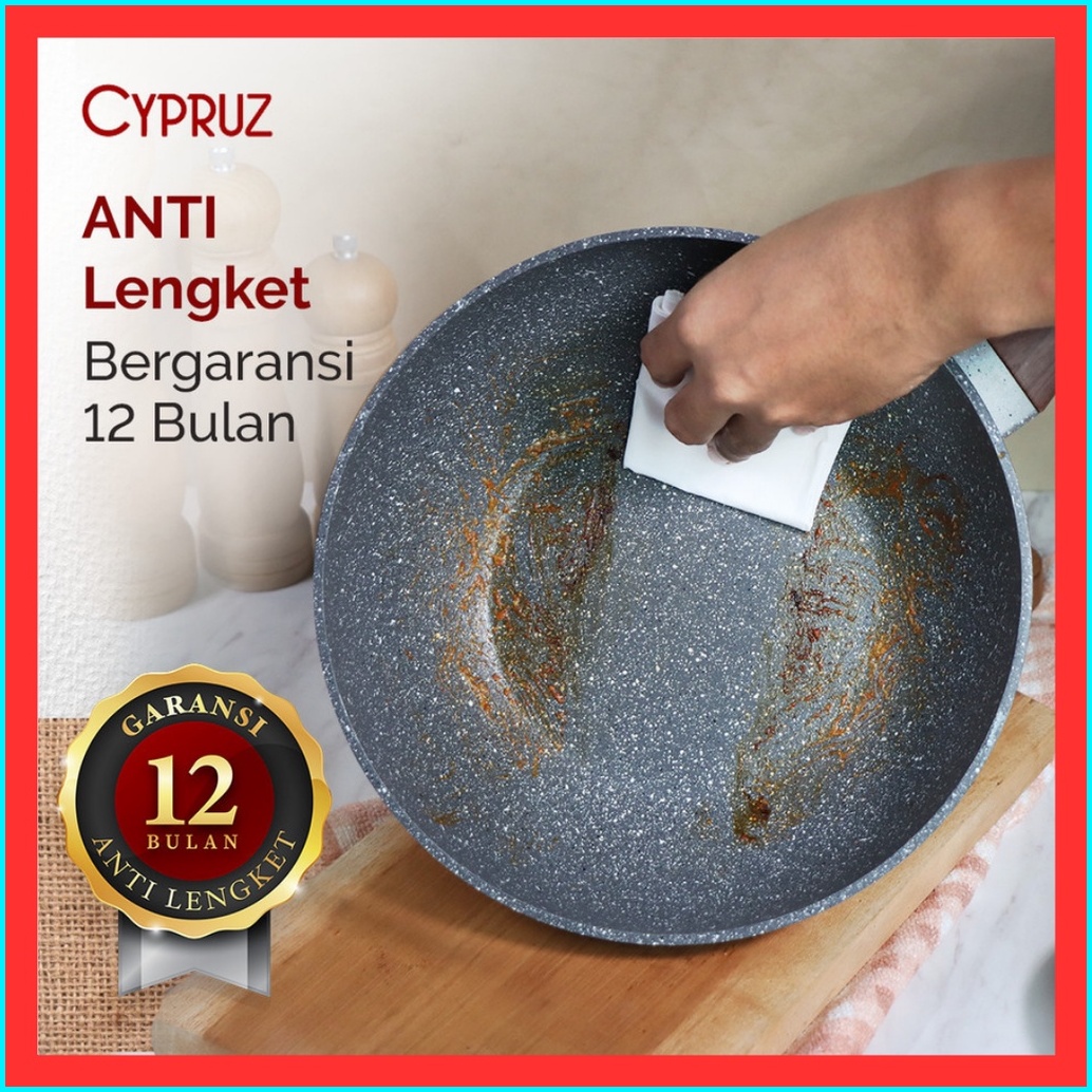 Cypruz Marble Wok Pan Marble Fry Pan Marble Sauce Pan Marble Grill Pan Tamagoyaki Wajan Anti Lengket