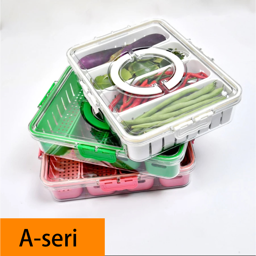 Kotak Penyimpanan Sekat Wadah Bening Akrilik Laci Storage di Kulkas Tempat Bumbu Sachet Sambal Lauk