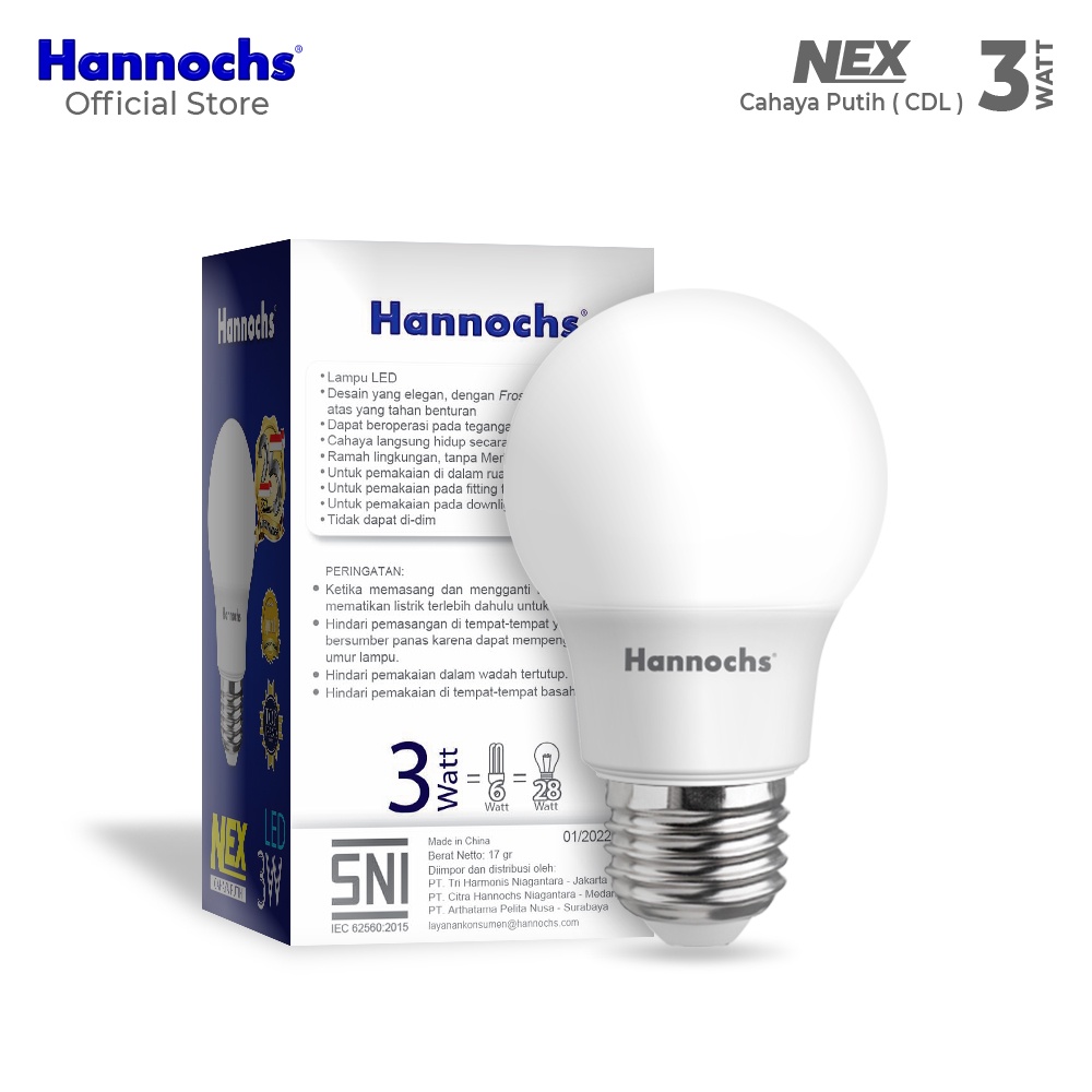Hannochs Lampu Bohlam LED NEX 3W Cahaya Putih Paket isi 5pcs