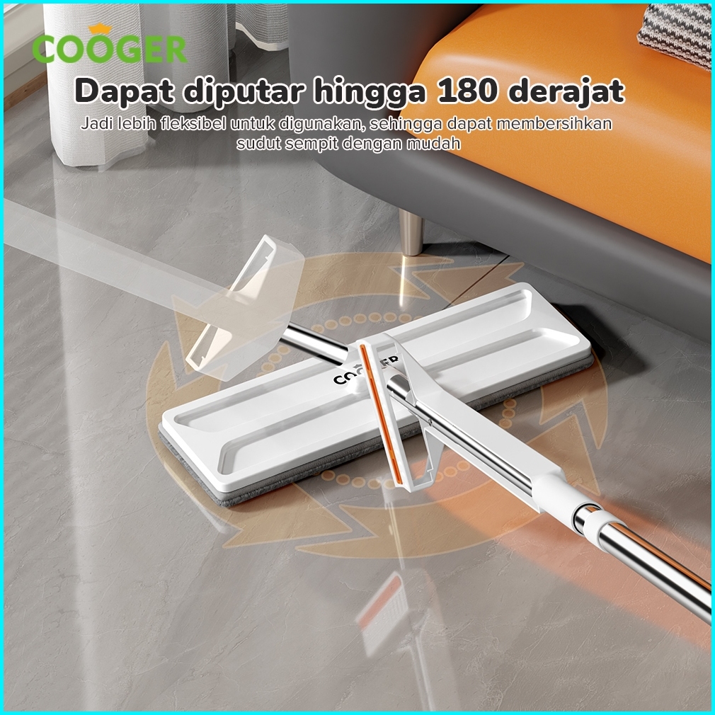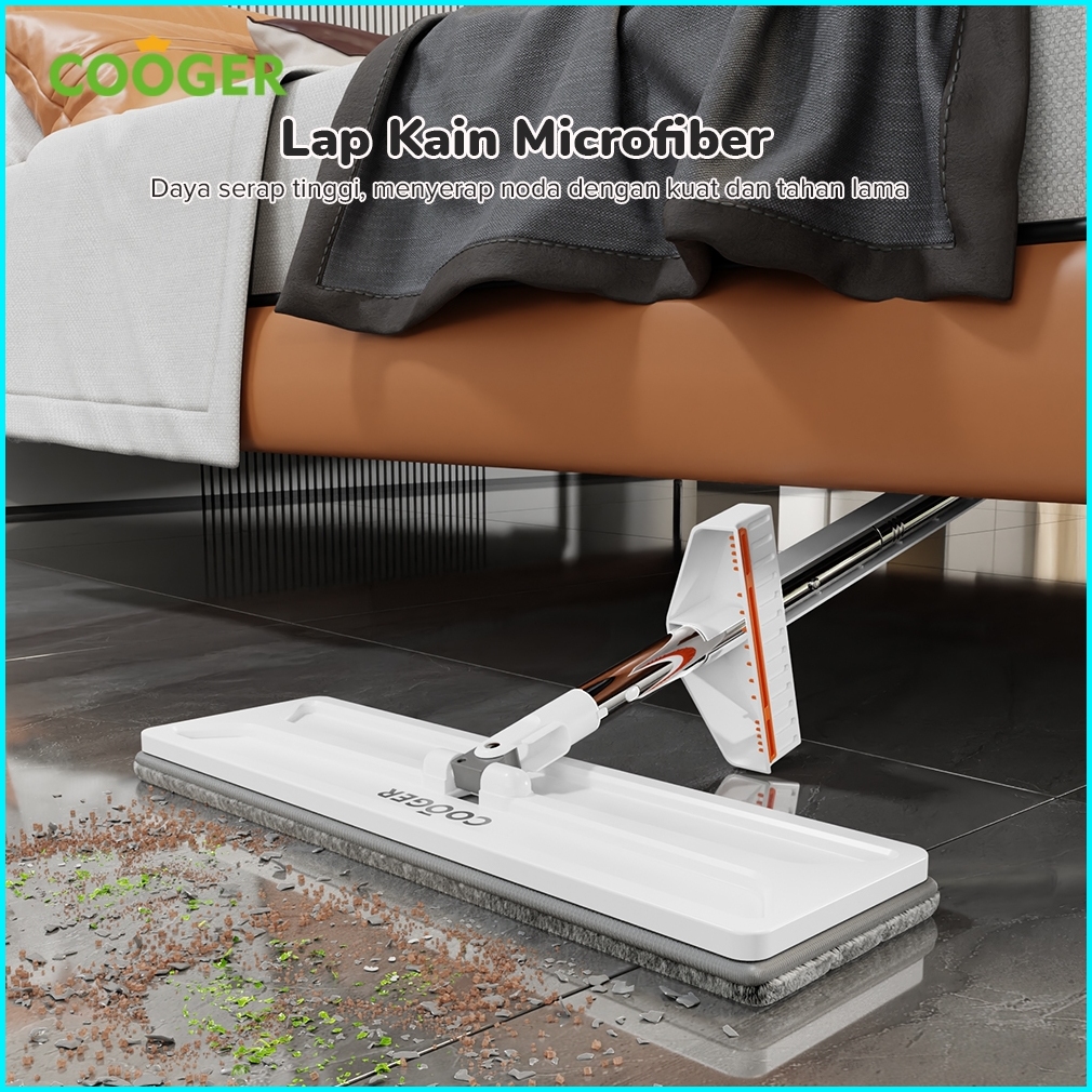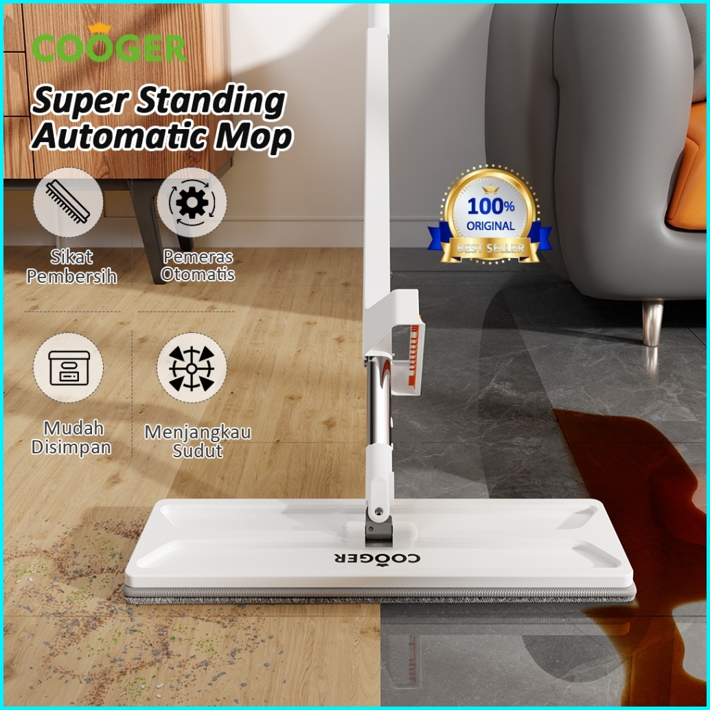 Cooger Alat Pel Viral White Standing Microfiber Mop Alat Pel Lantai Tarik Otomatis Dapat Berputar 360 Derajat Dan Berdir