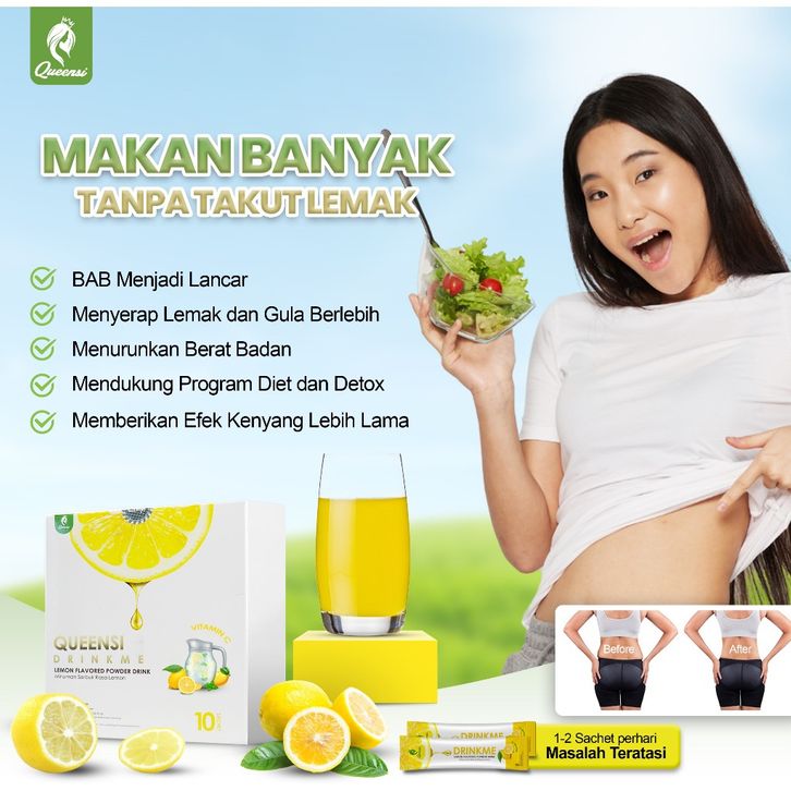 Pelangsing Dan Penghilang Lemak Di Tubuh Queensi Drinkme Lemon isi 10 Sachet