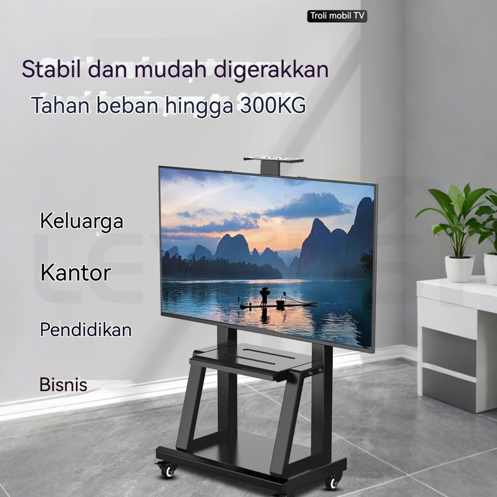Bergerak Bracket Standing TV 55 Inch Dudukan TV Portable Universal Dengan Roda 360°