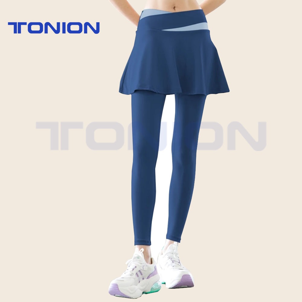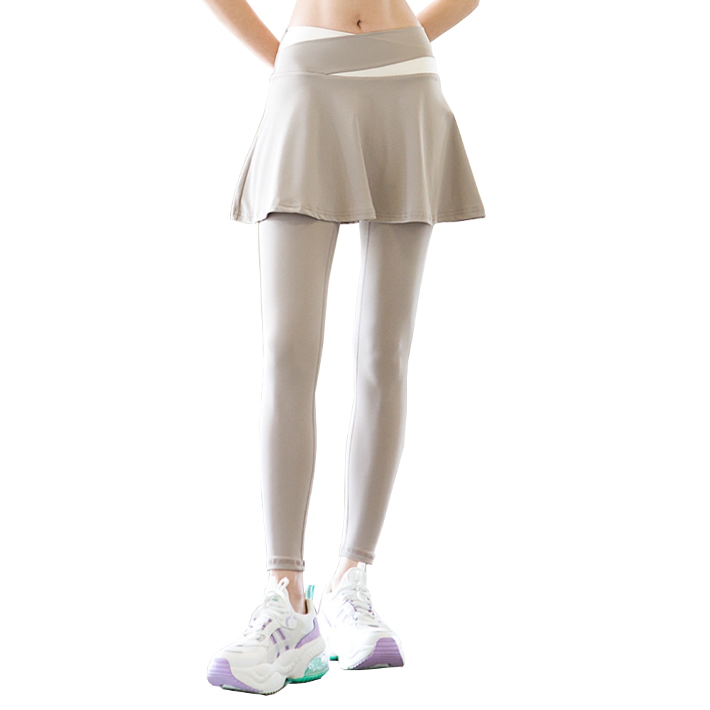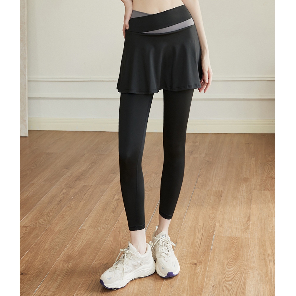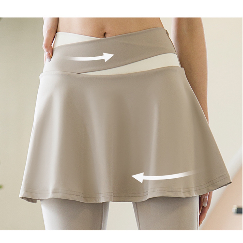 Celana Rok 2 in 1 Olahraga Legging Wanita Dua Lapis Pakaian High Waist Polos Bersepeda Gym Tennis Yoga Running Sport Fitness