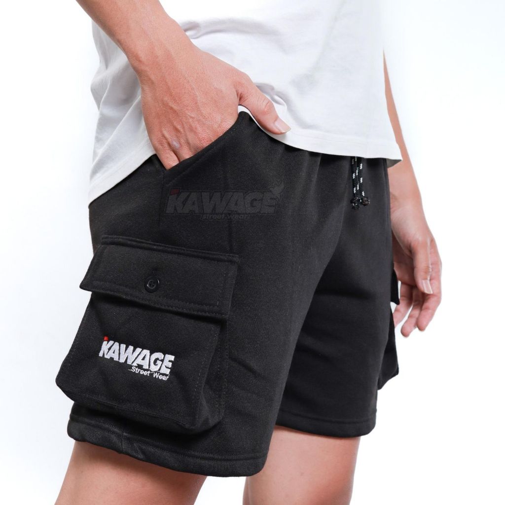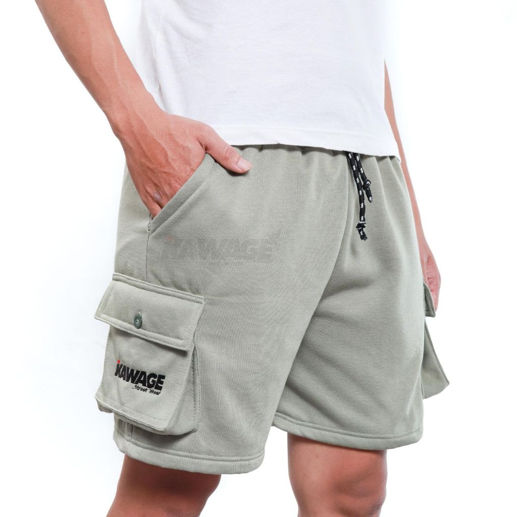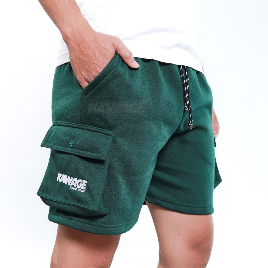 KAWAGE BIG Celana Pendek Jumbo Cargo Pria Wanita Distro Dewasa Bahan Fleece Adem Murah Hijau Botol