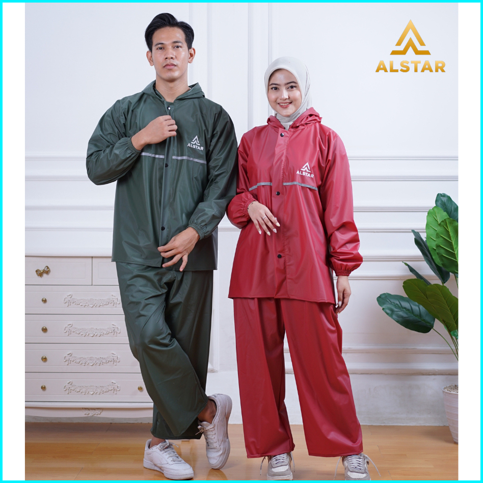 Jas Hujan Raincoat Mantol Pria Wanita Terbaik Bahan Pvc Tebal Anti Rembes By Alstar