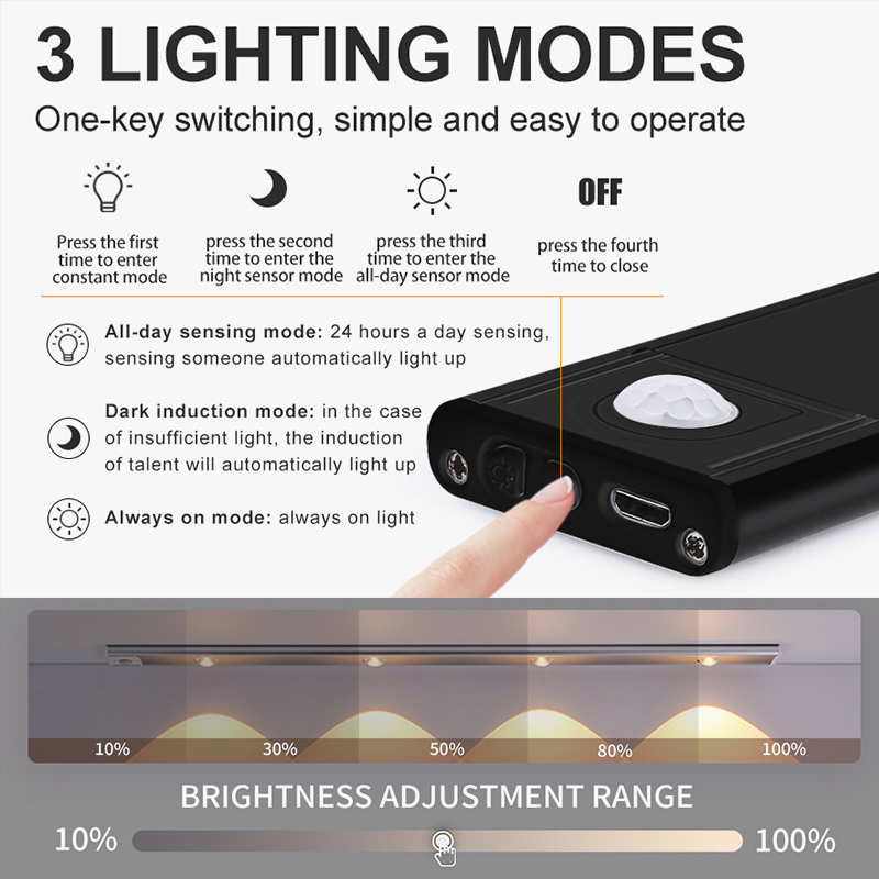 Sensor Gerak Lampu Led Cerdas Untuk Kabinet Lampu Serba Guna Lampu LED Magnetik Isi Ulang 20/40/60cm / Motion Sensor Smart