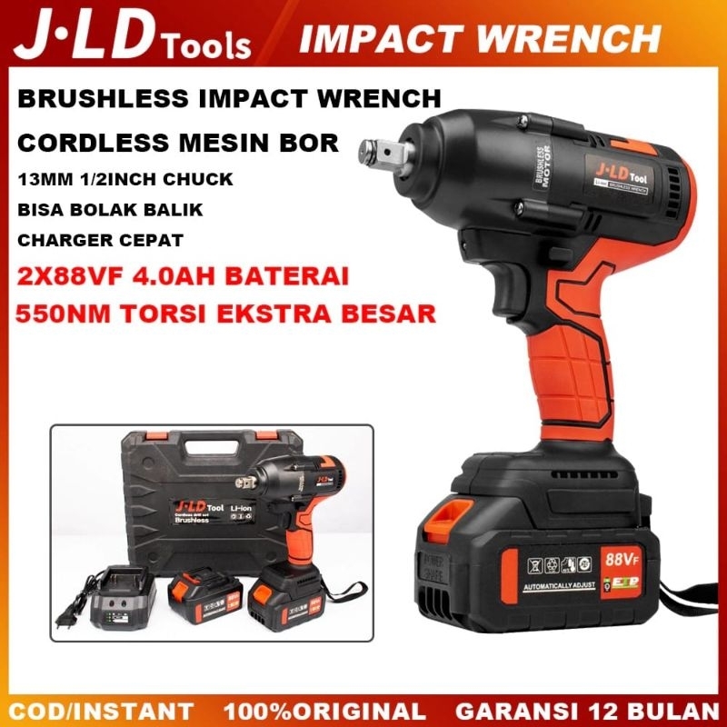 JLD Cordless Impact Wrench JLD JUMBO 650NM 48V-88V Brushless 2 BATERAI 88VF Torsi MAX 700NM