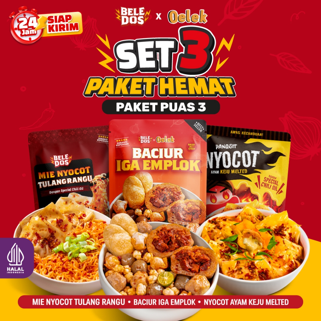 Beledos Paket Puas 3/ Baciur Iga Emplok / Pangsit Nyocot Tulang Rangu / Pangsit Nyocot Ayam Keju