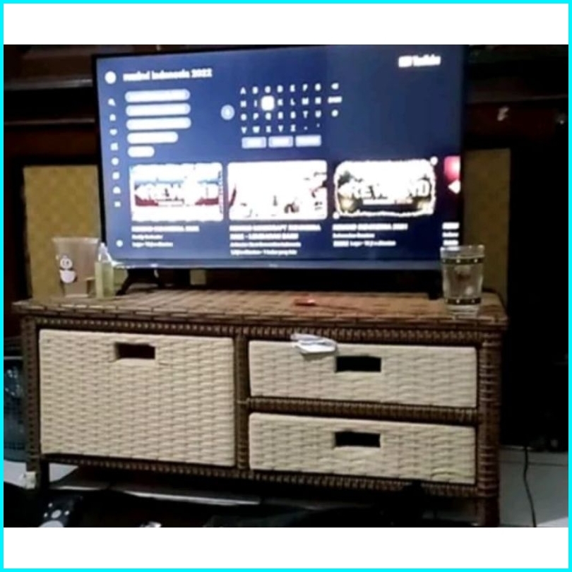 Meja Tv Rotan Sintetis Meja Rak Laci 3 Serbaguna