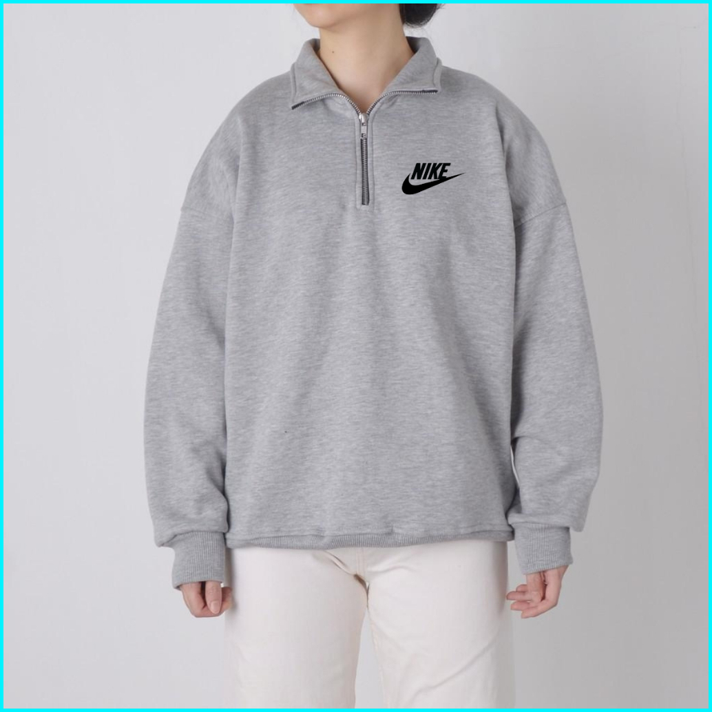 Half Zip Niikke Logo Premium Pria Wanita Bahan Fleece Tebal Kerah Turtleneck Sweater High Neck