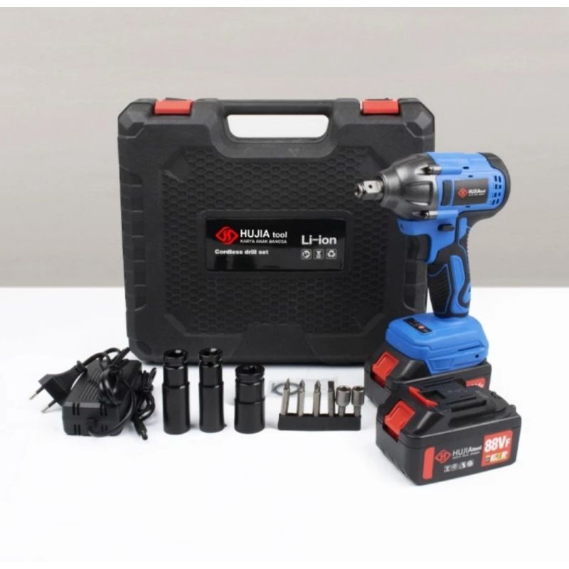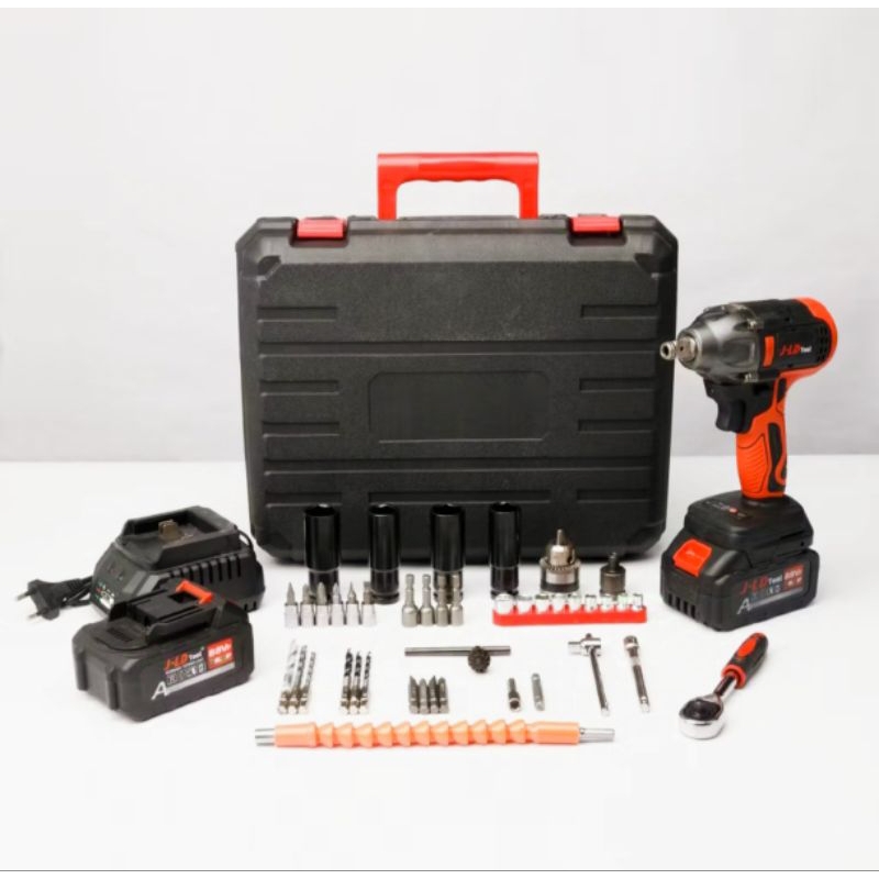 JLD IMPACT WRENCH CORDLESS - MESIN BOR 48V 2 BATERAI JV88 J.LD TOOL MERAH