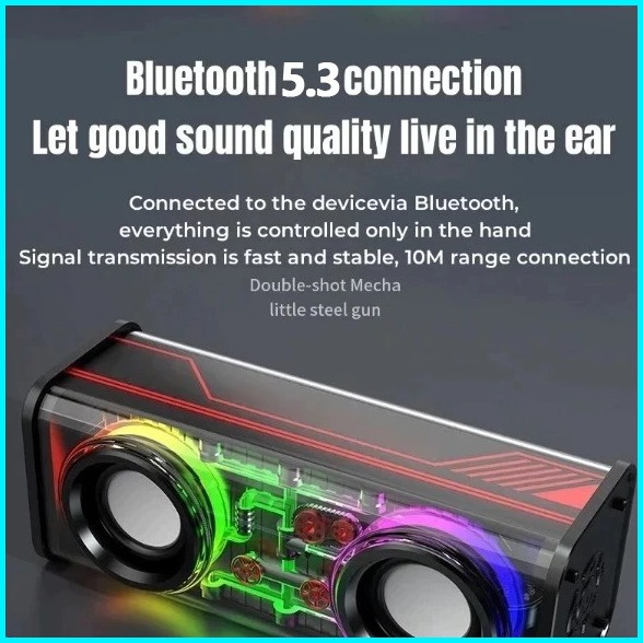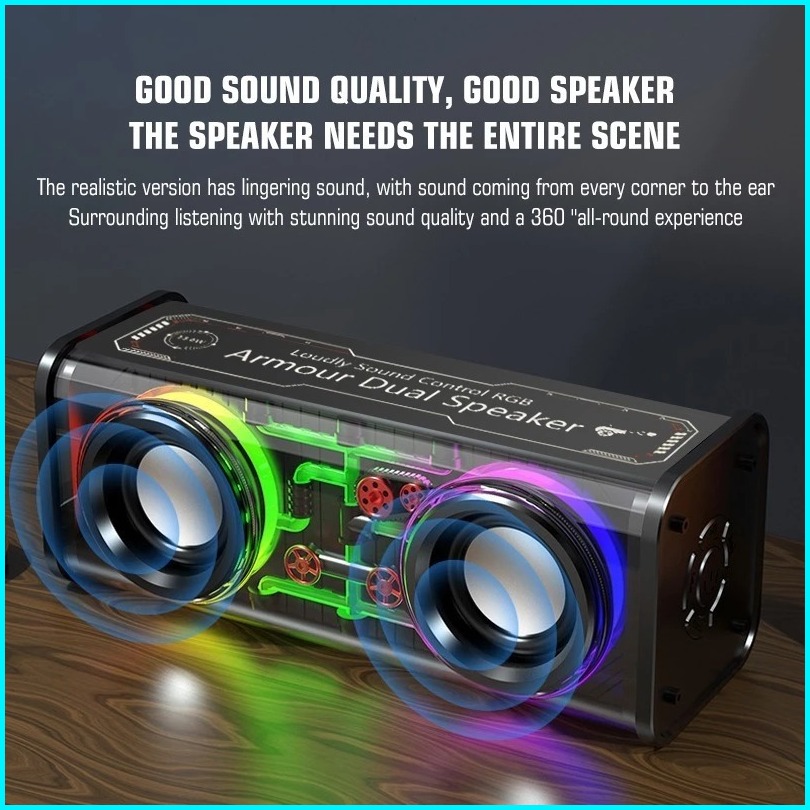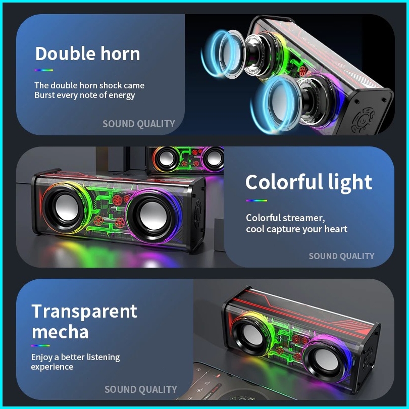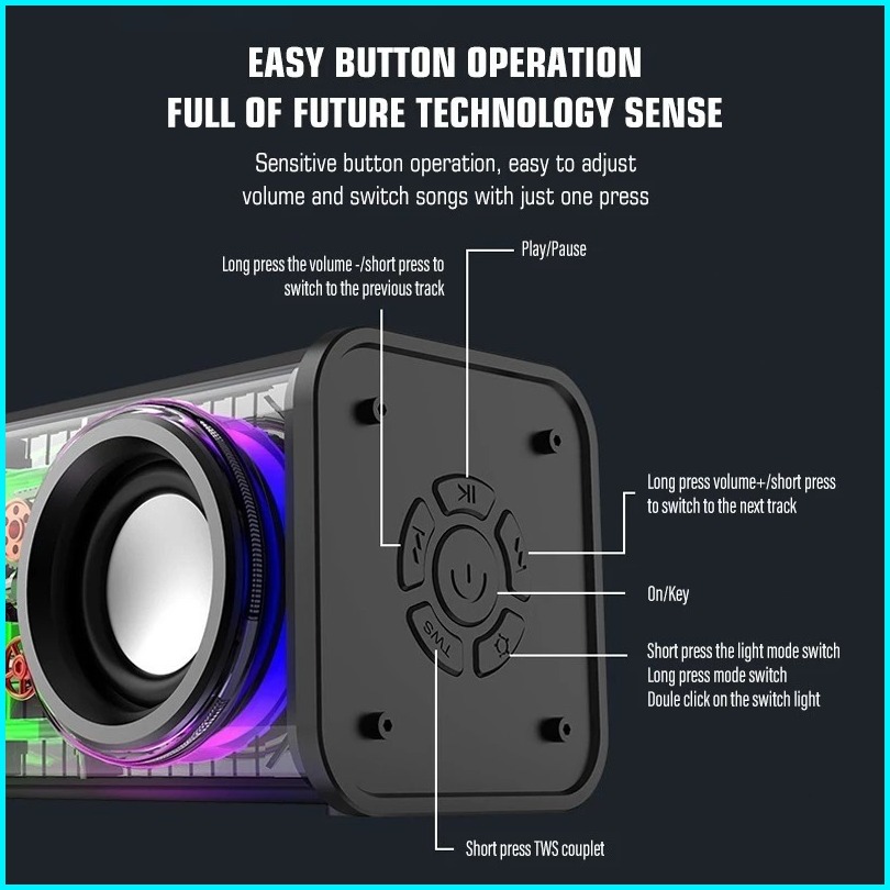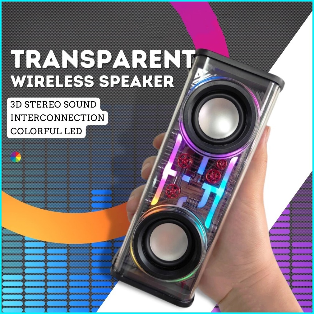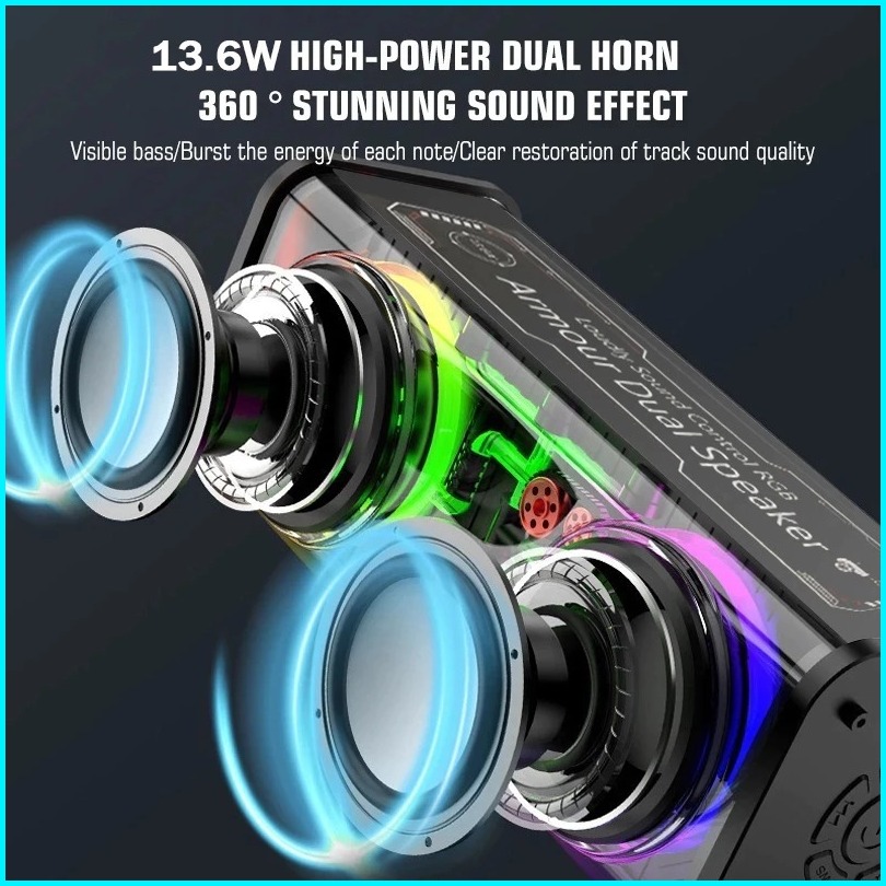 13.6wbluetooth Speaker Double Subwoofer Music Speaker Rgb Led Light Transparent Cyberpunk Speaker