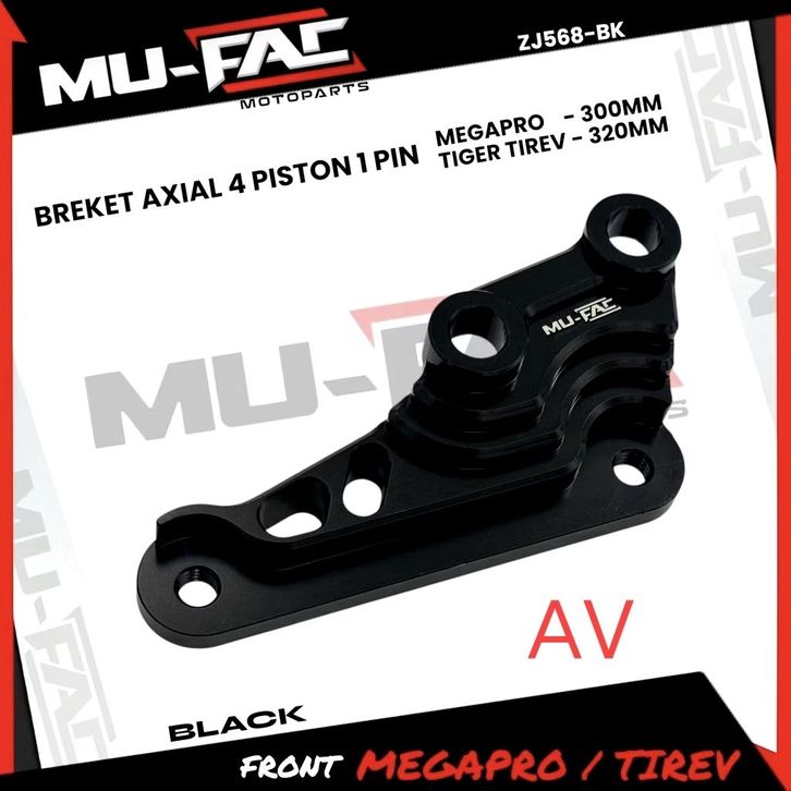 MUFAC Breket Kaliper AXIAL 4 Piston Motor Yamaha Megapro 300mm & Tiger Tirev 320mm Full CNC Aluminium antti kaarat Hita