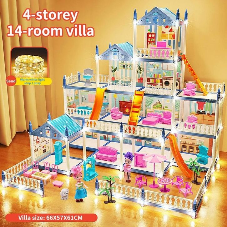 ZCTOY Mainan Anak 3D DIY Princess Big Vill Pink Castle Bermain Yard Kit Dirakit Rumah Hadiah Ulang Tahun untuk Anak Pe