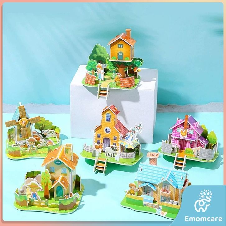 Mini 3D Puzzle DIY Rumah Mainan Edukasi Miniatur DIY Rumah Bahan Foam 3D Jigsaw Villa Puzzle Ran Rumah Rumahan