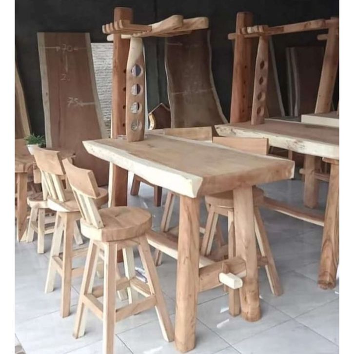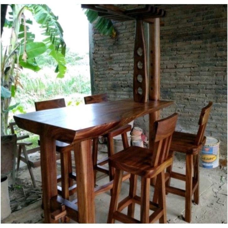 PROMO Set Kursi Bar // Meja Makan Kayu trembesi k4 ORIGINAL