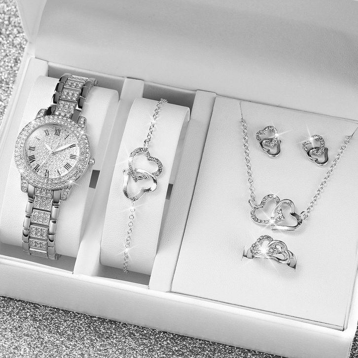 jam tangan wanita set Jam Tangan Wanita Kuarsa berrliaan Skala Romawi Tali bajja Dial Kecil Dengan Set Perhiasan Tanpa