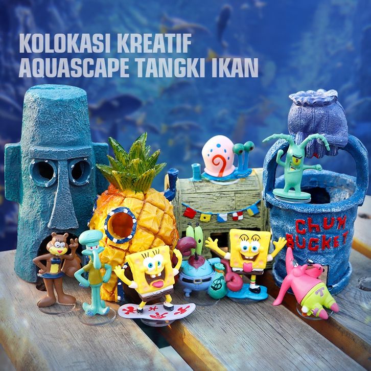 MURAH Hiasan aquarium Spongebob squidward patrik ofirh