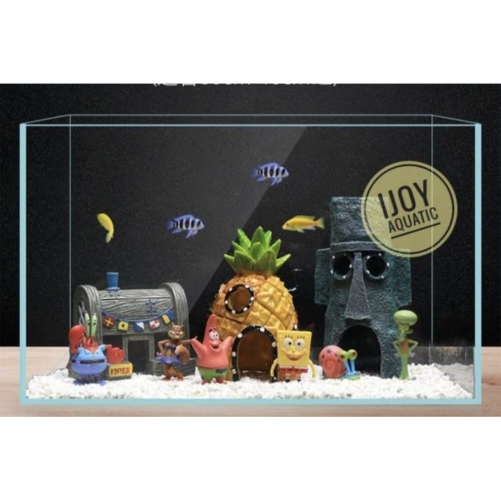 TERBARU Hiasan akuarium SPONGEBOB rumah nanas Squidward krusty krab hiasan dekorasi akuarium ebakd