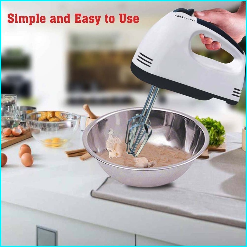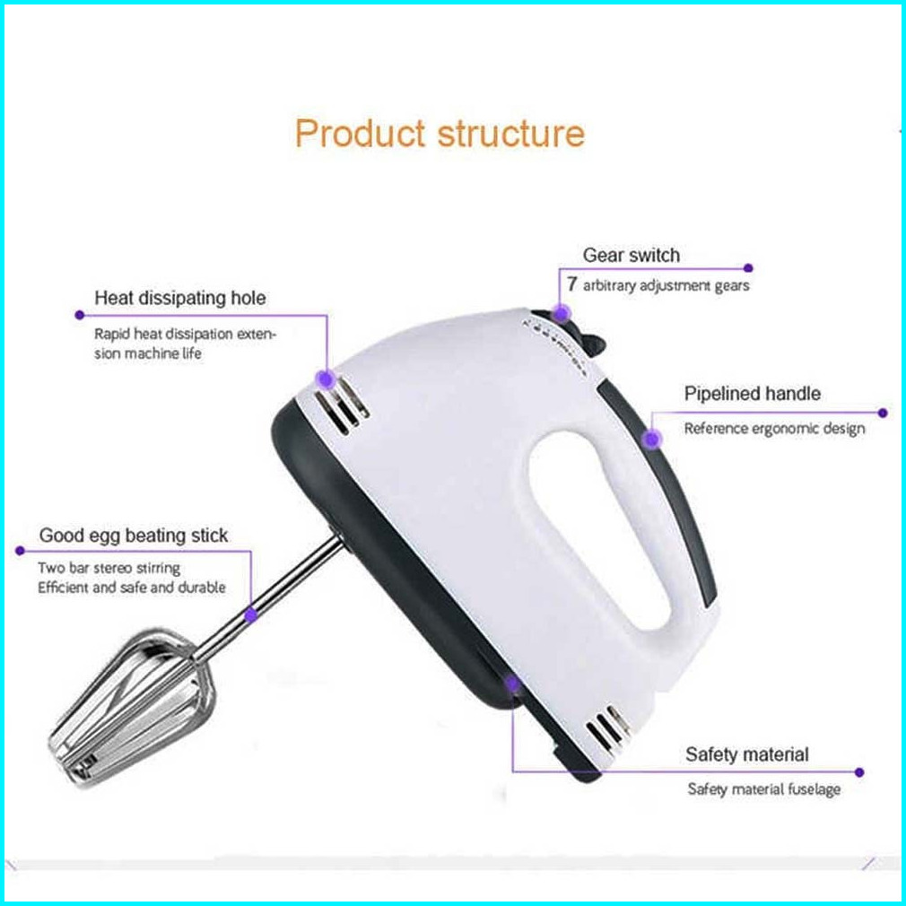 Mixer Tangan Super Hand Mixer Elektrik Pengaduk 7 Kecepatan Otomatis Putih Pengaduk Telur Kue - Free 4 Buah Alat Pengoco