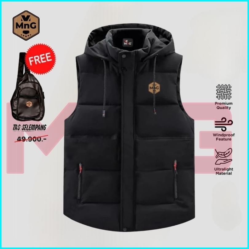 Mngstoreco Rompi Vest Pria Dan Wanita Dewasa Polos Waterproof Windproof Warna Hitam