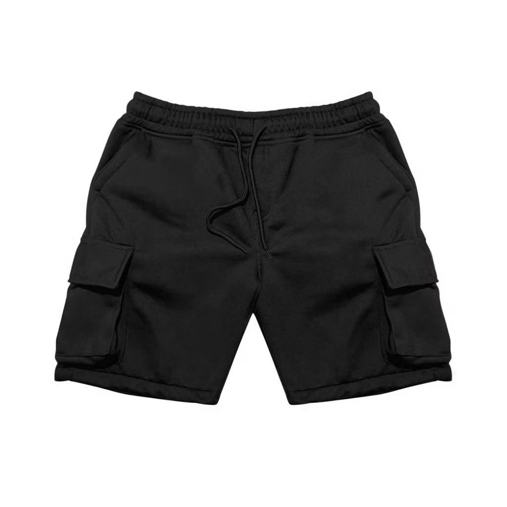 My Mind - Celana Pendek Pria Cargo Pants Fleece Hitam Polos