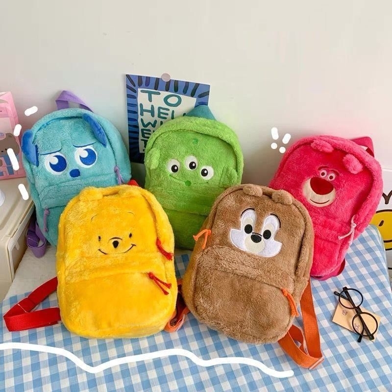 Tas Ransel Disney Plushie Karakter Lotso Monster Mini Inc Pooh Backpack Bulu Lucu Kecil Wanita Remaja Tas Konser Boneka