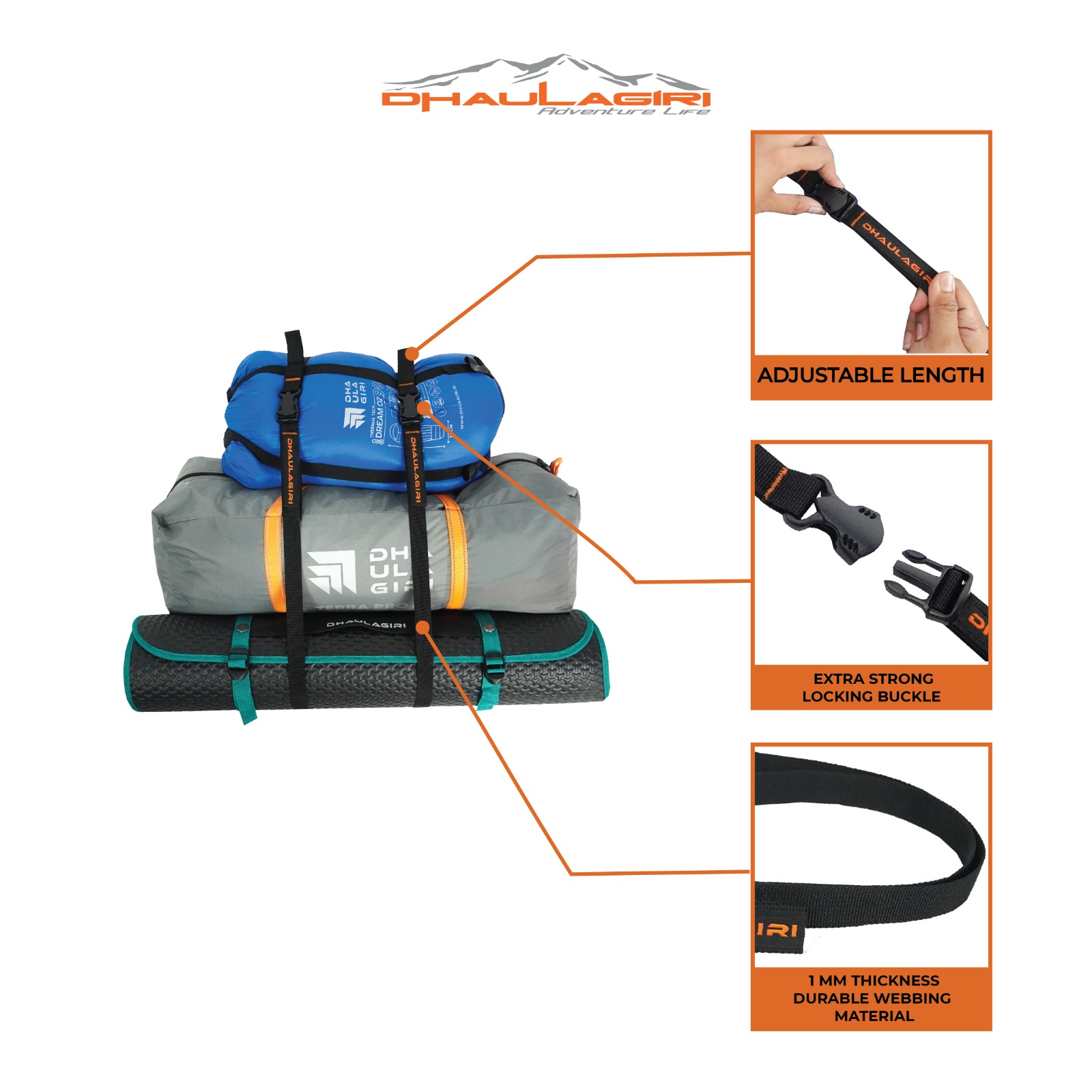 DHAULAGIRI WEBBING STRAP 60 CM & 120 CM / TALI MULTIFUNGSI / TALI PENGIKAT BARANG CAMPING