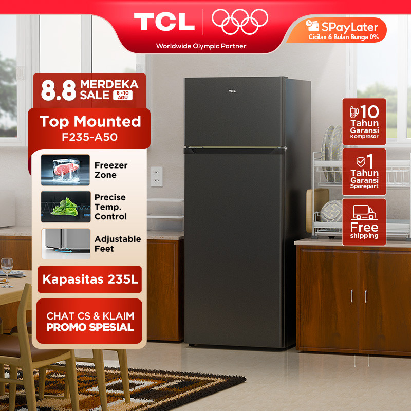 [Star] BIG CAPACITY TCL Kulkas 2 Pintu 206L Electronic Control Lemari Es Kecil Kamar Mini F235-A50 Official Store