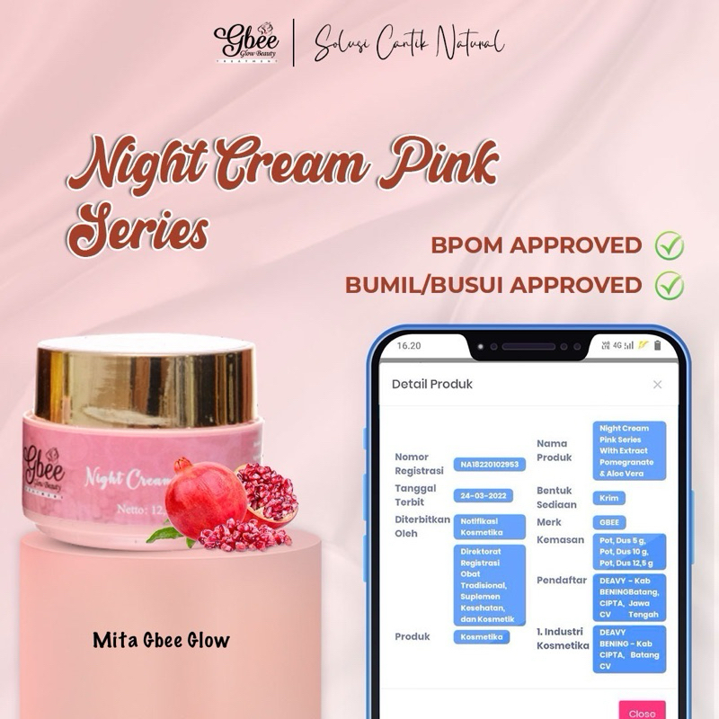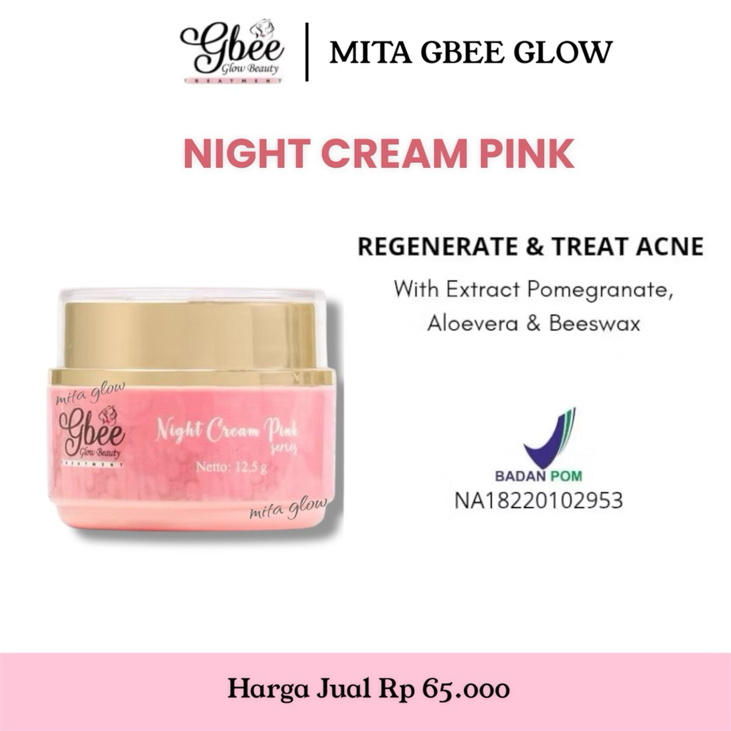Glow Beauty Night Cream Pink Series 12,5gr Gbee Glow Beauty / Pelembab Wajah / Cream Malam/skincare/skincare pria/skinc