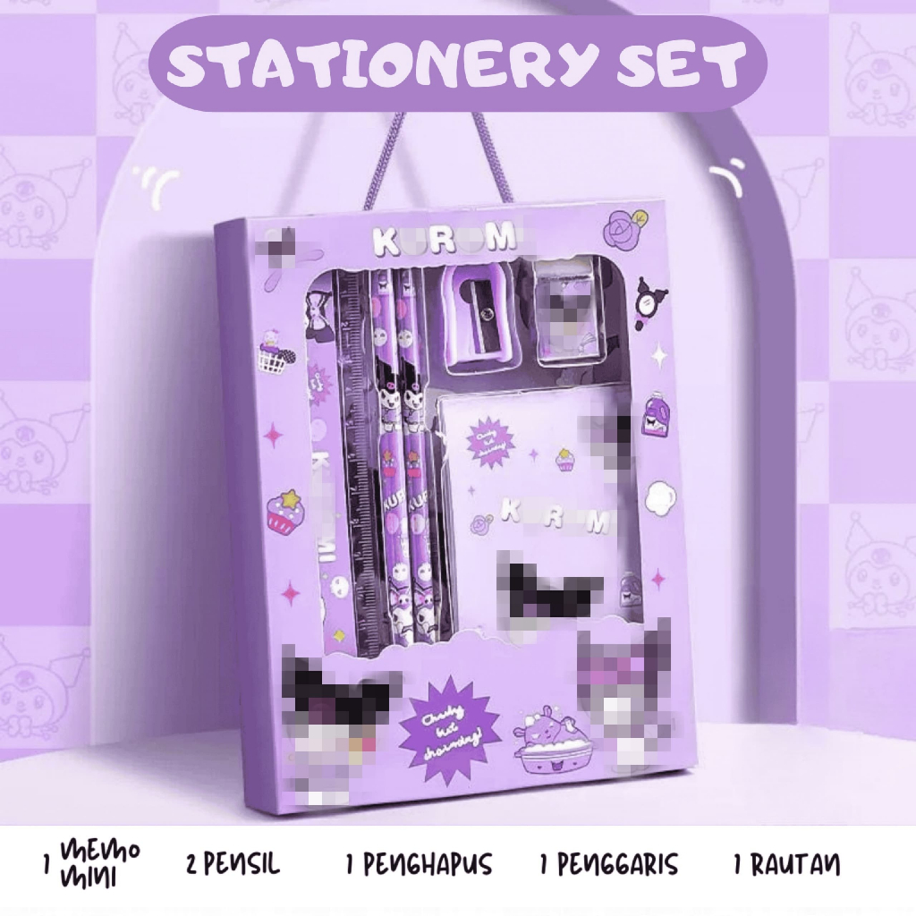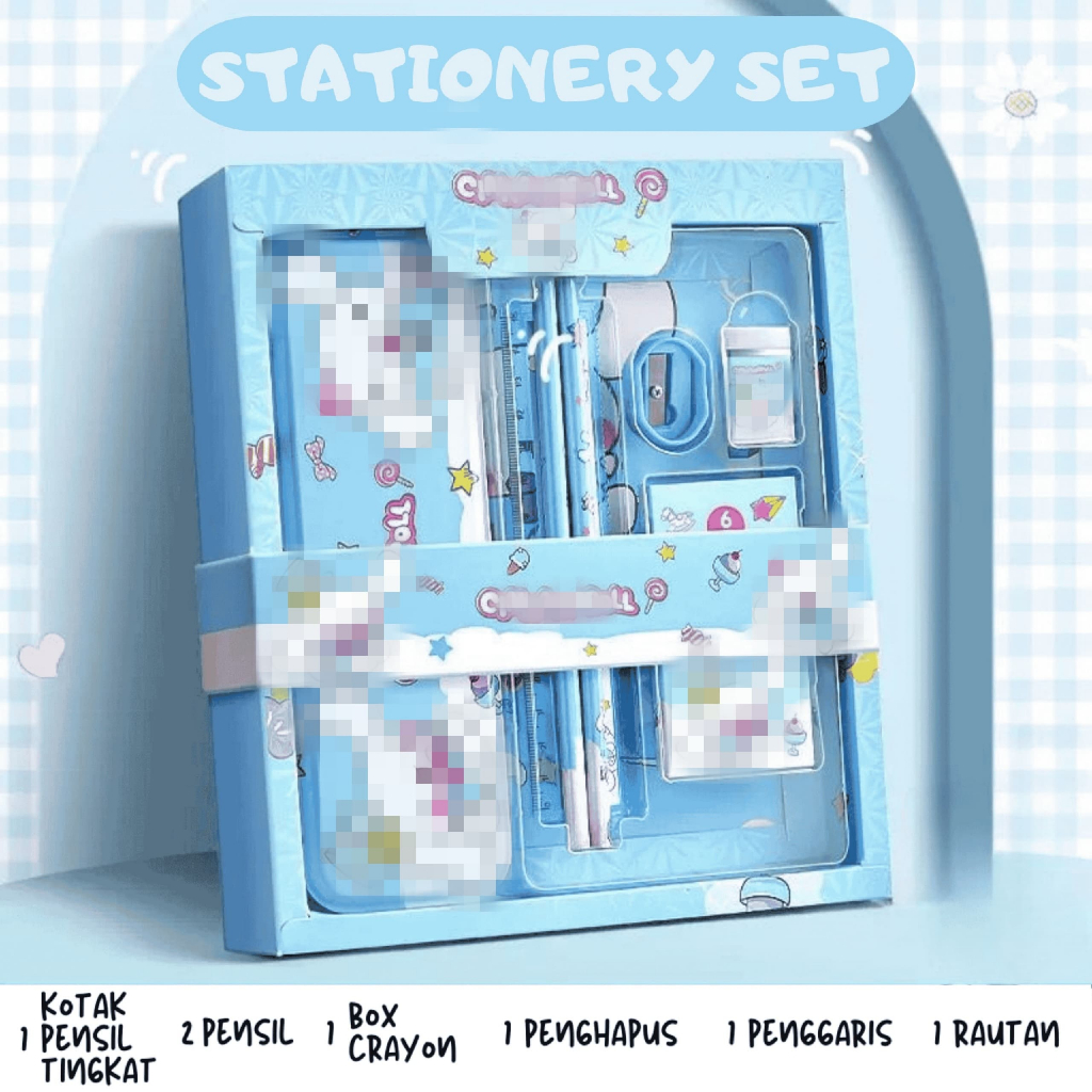 Kotak Pensil Anak set Stationery Untuk Hadiah Anak Sekolah Motif Lucu Kartun Lucu Terkenal Viral Booming/ Alat Tulis Set