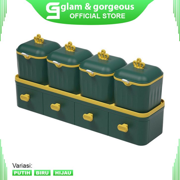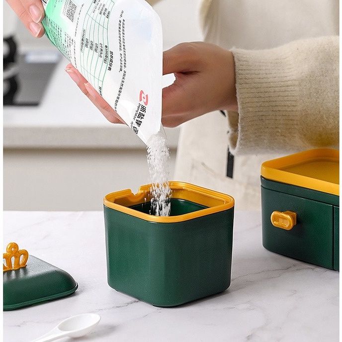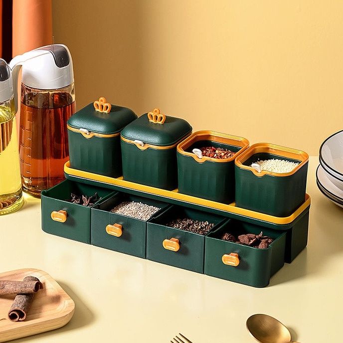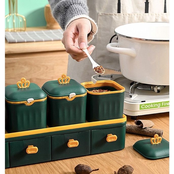 Tempat Bumbu Dapur Set Tempat Bumbu Dapur Aesthetic Rak Kotak Penyimpanan Plastik Set Serbaguna TBD012