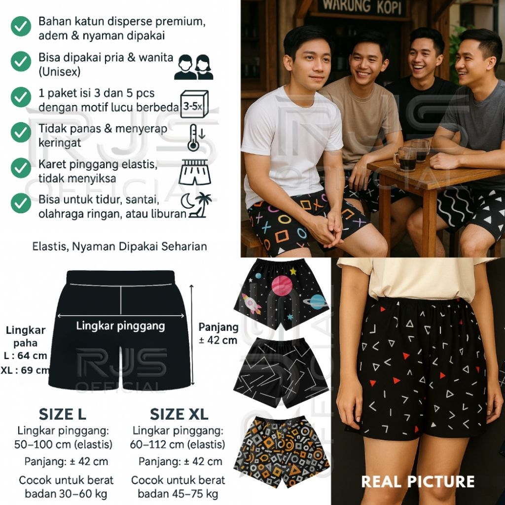 Celana Boxer Pria Wanita 5 Pcs - Celana Pendek Katun Lucu Adem Unisex - Celana Santai Harian Dewasa