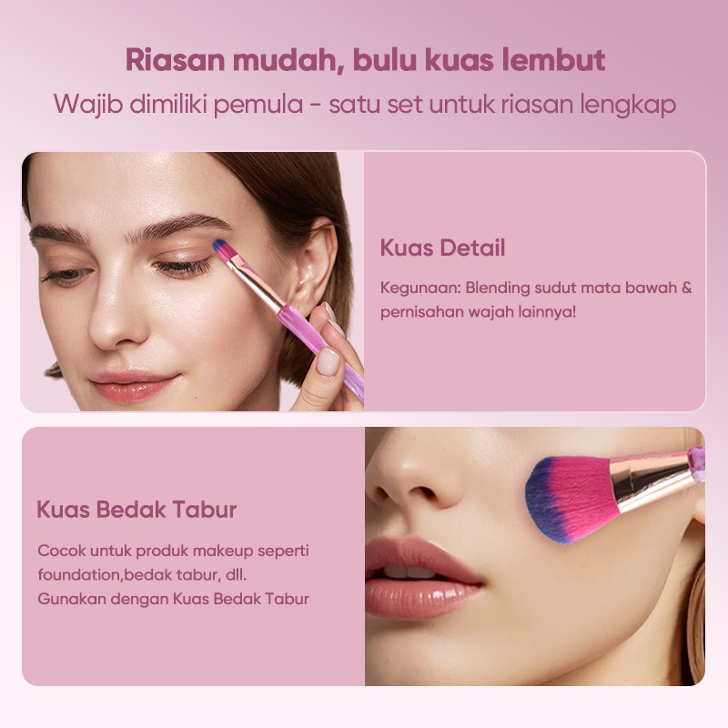 Gratis: SALSNOW set kuas rias 7 potong Kuas rias multifungsi Eyeshadow kontur alis kuas makeup foundation bibir Premium
