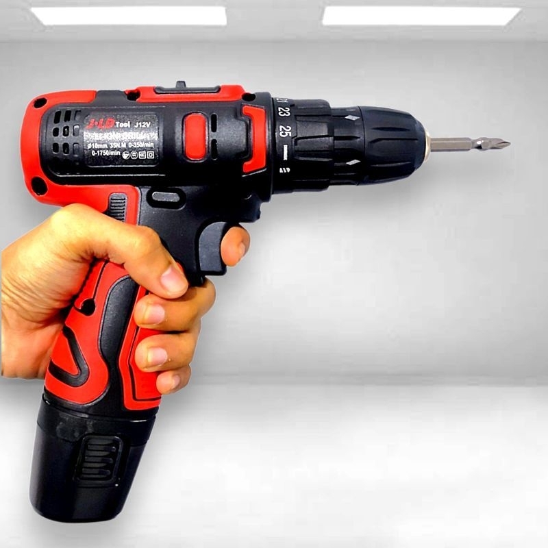 Mesin Bor Baterai Cordless Drill JLD 12V-1A Merah 1 Baterai Paket Hemat