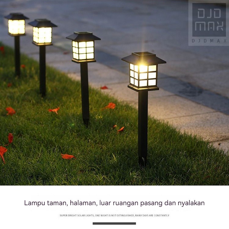 DJDMax Lampu Rumput Surya, Lampu Taman Tahan Air Luar Ruangan, Menyala Otomatis Saat Gelap, Lampu Malam Dekorasi Taman