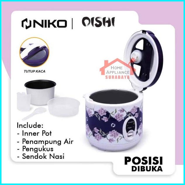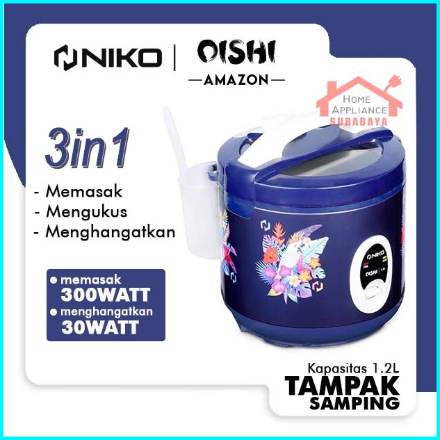 Niko Rice Cooker - Magic Com 3 In 1 Oishi 1.2 Liter Tutup Kaca Amazon - Batik - Landmark Penanak Nasi