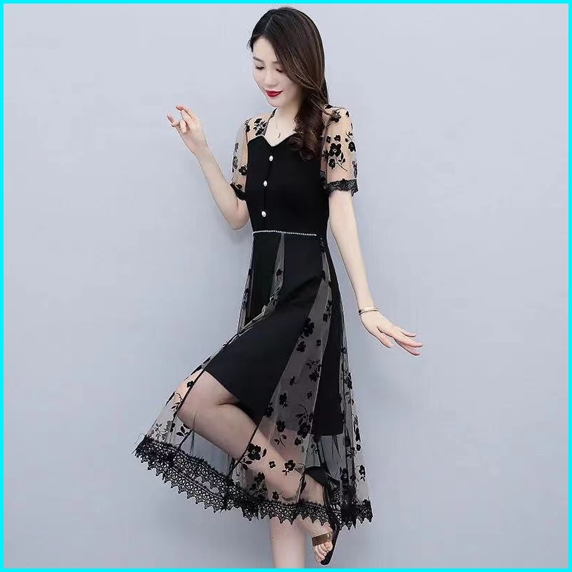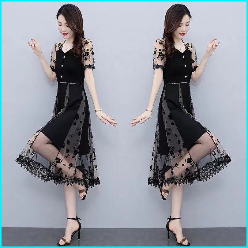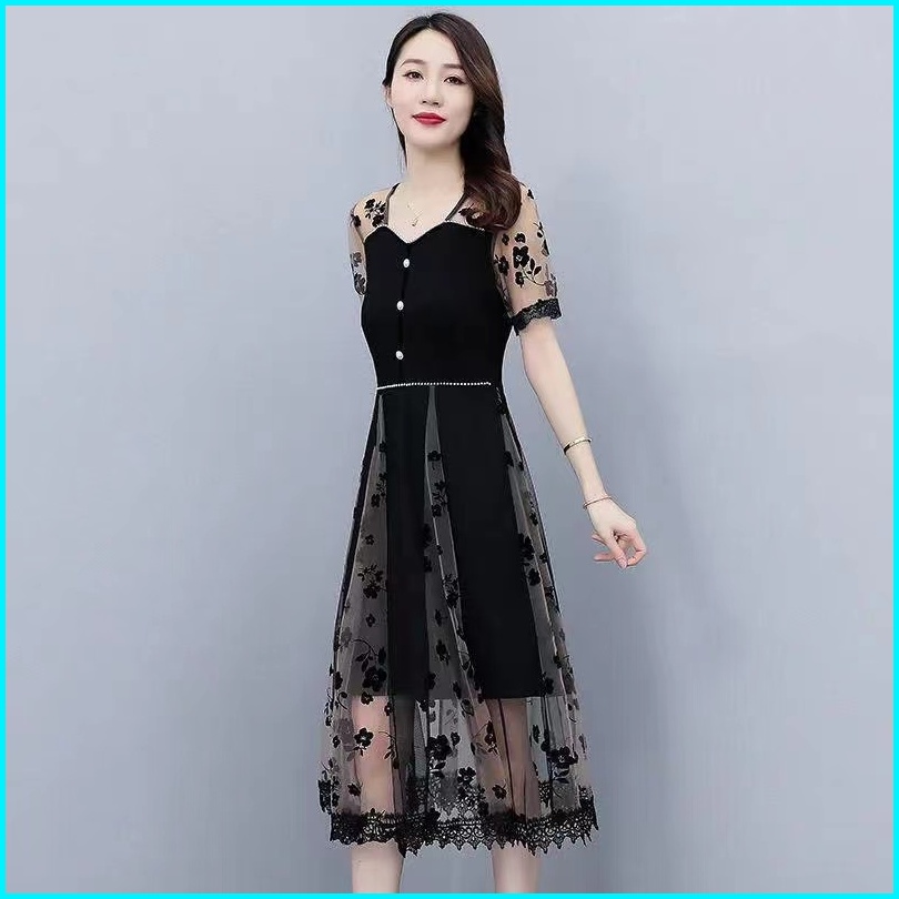 Readydress Brokat Maroon Korea Terbaru Dress Pesta Mewah Elegan Premium