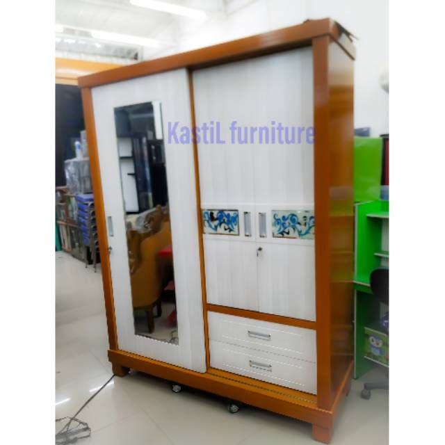 Lemari pakaian kayu blokteak minimalis 2 pintu jumbo sliding + buka biasa evo