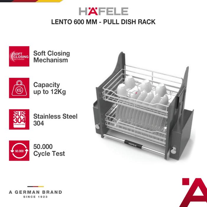 Hafele Lento Rak Piring Pull Down Tarik Elevator Dish Rack Stainless Steel 60cm
