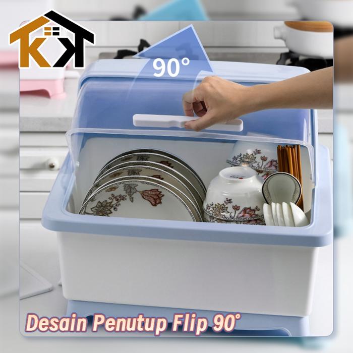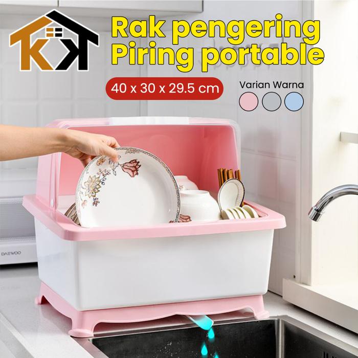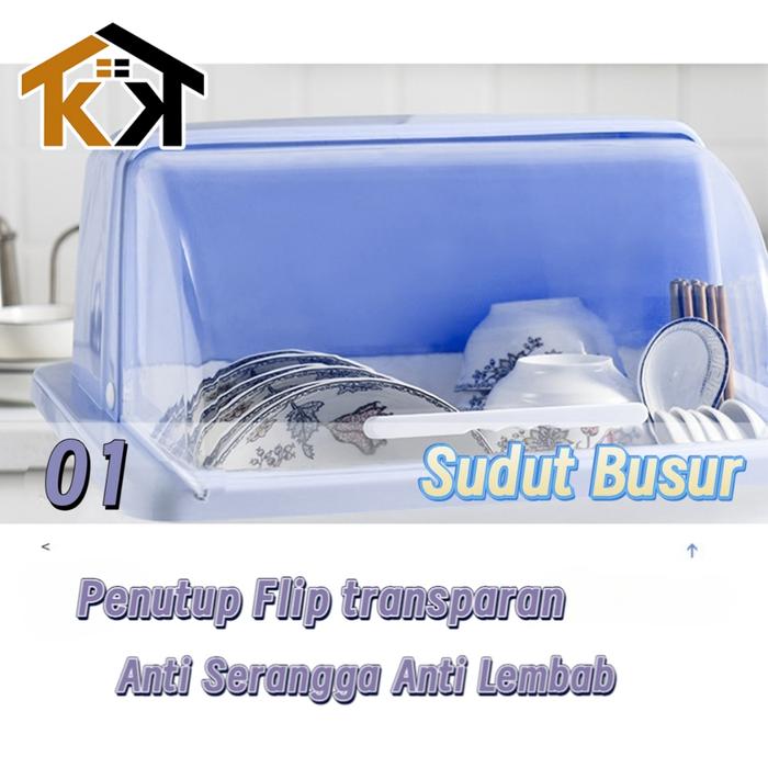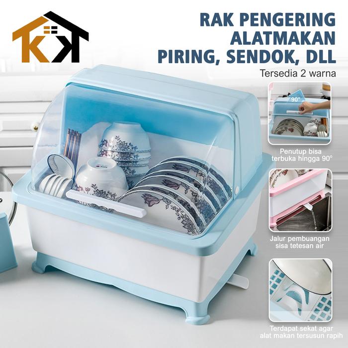 (KK) Tempat Pengering Alat Makan Rak Piring Plastik Pengering Air Dengan Tutup